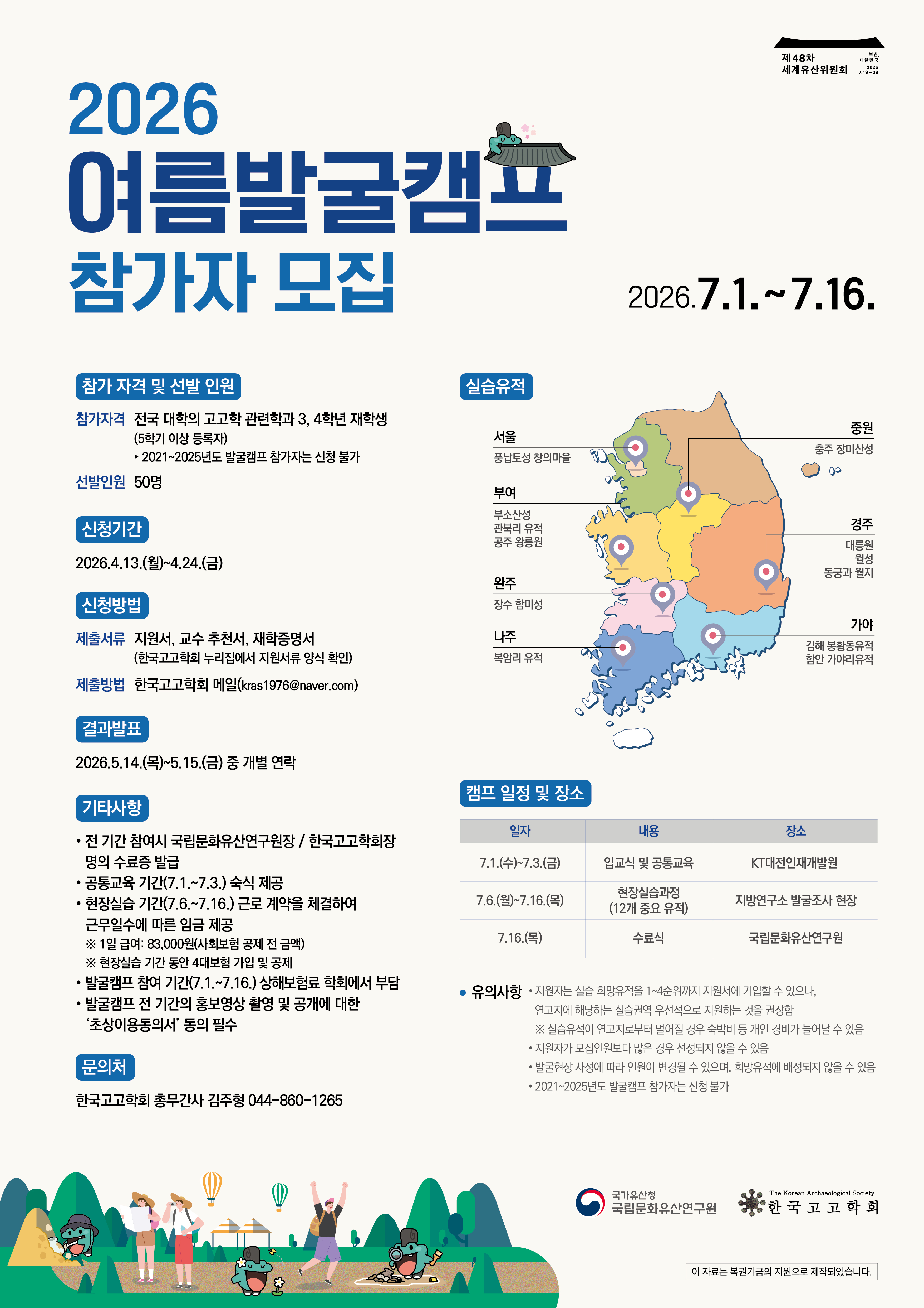 2026년 국립문화유산연구원 ․ 한국고고학회 공동 주최