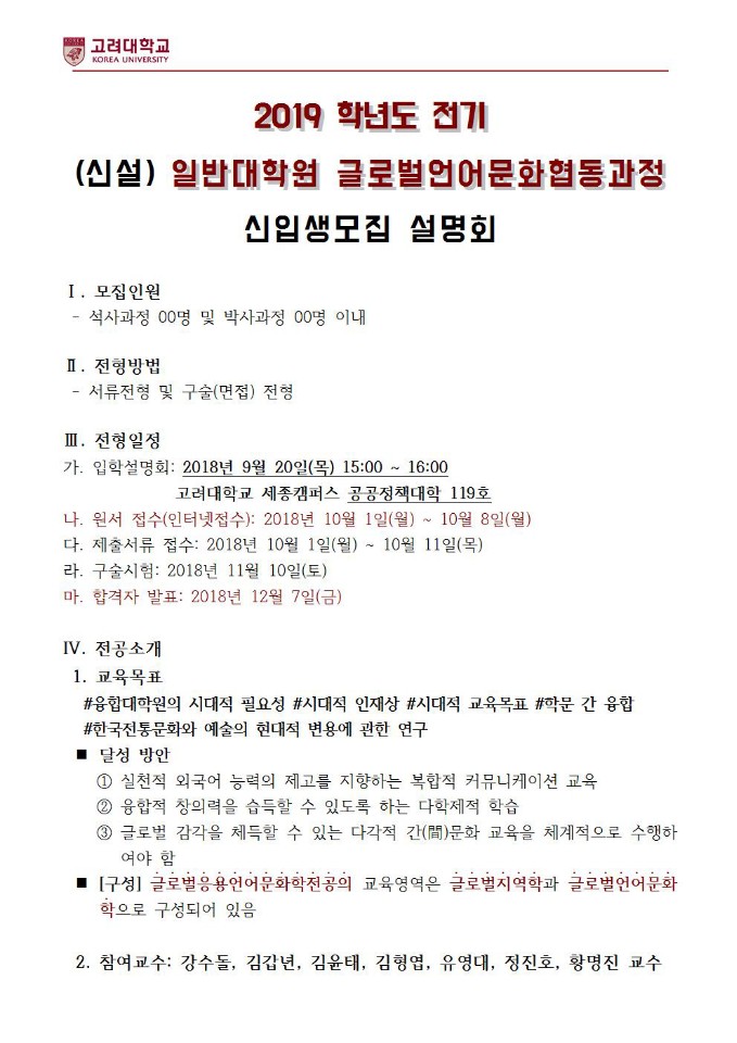 2019학년도 전기 일반대학원(글로벌언어문화협동과정) 설명회
