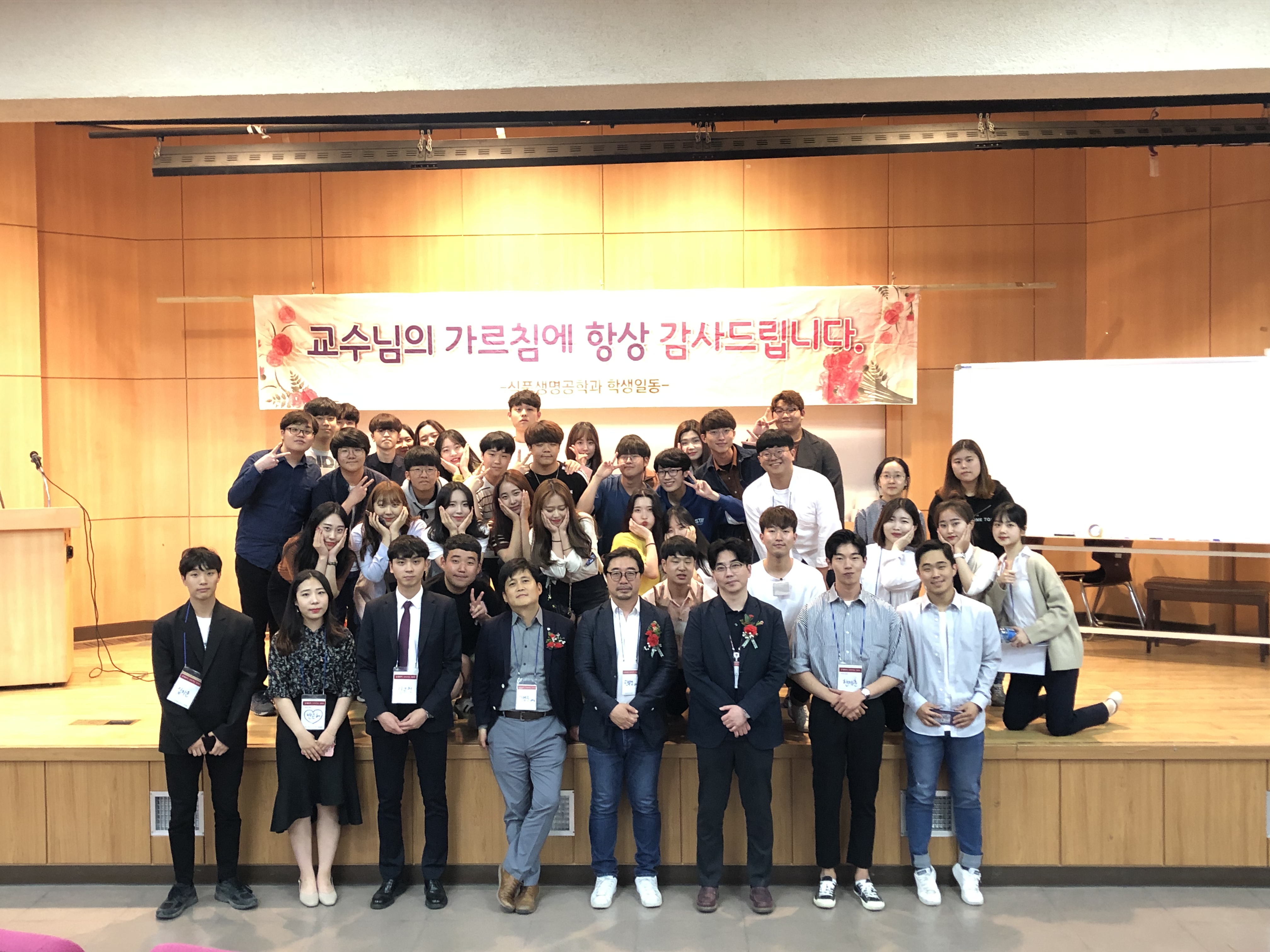 안녕하십니까 31대 식품생명공학과 학생회 입니다. 5월을 맞아 존경하는 교수님께 감사를 드리는 사은회 자리를 마련하였습니다. 한 학기의 마지막 행사를 즐겁게 마무리 하는 시간이 되었길 바랍니다. 모두들 수고하셨습니다^^