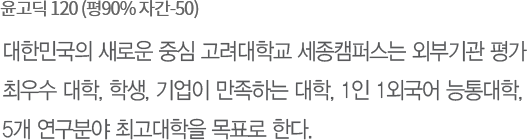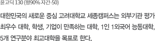 교육혁신, 연구혁신, 지역혁신을 통한 ‘고려대학교 세종캠퍼스’라는 독보적 브랜드를 구축하고, 더 강한 고려대학교, 더 빛나는 미래를 향해 나아갑니다.